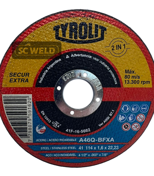 DISCO DE CORTE 4½" X 1,60MM X 7/8" TYROLIT SECUR EXTRA