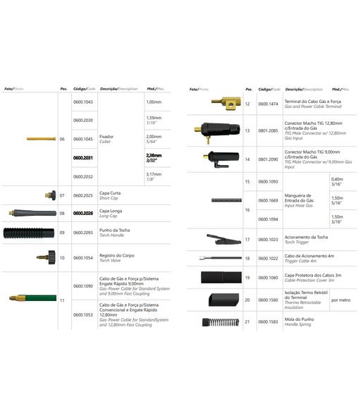- Acompanha consumíveis bocal, porta bico, pinça e capa