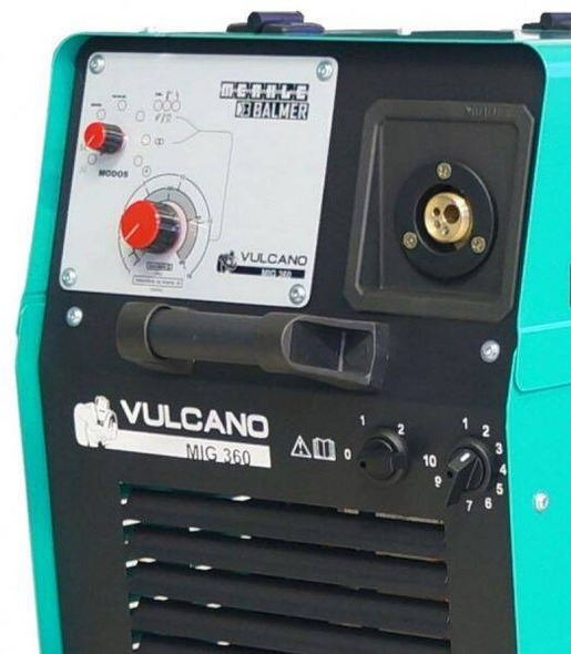 Os equipamentos Vulcano MIG possuem uma fonte transformadora de alta durabilidade, com curva característica de tensão constante (CV) e regulagem precisa de 20 posições abrindo uma faixa de trabalho de 45A a 360A.