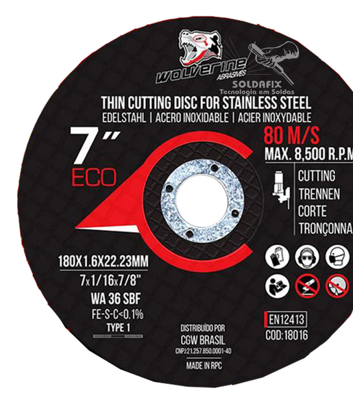 DISCO DE CORTE 7" X 1,60MM X 7/8" WOLVERINE CGW
