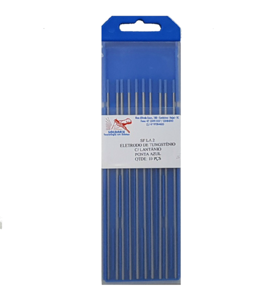 - Descrição: Eletrodo de tungstênio com LANTÂNIO, fornece uma excelente abertura do arco, é indicado para altas temperaturas. Ele pode substituir eletrodos com tório, sendo usado em processos de soldagem AC e DC. PONTA AZUL.