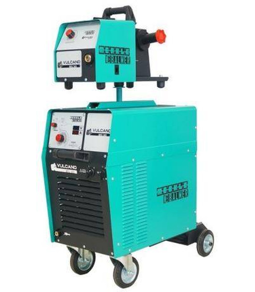 As fontes de soldagem MIG/MAG, da linha modelo Vulcano MIG proporcionam uma excelente estabilidade do arco elétrico em todas as faixas de soldagem com regulagem por comutador de múltiplas faixas (20 posições) que permite o ajuste preciso dos parâmetros, conta ainda com indutância de dois níveis (360A@35%), possui conjunto tracionador com roletes reforçados, controle linear exato de velocidade com sistema de freio eletrônico do motor e compartimento do rolo de arame.