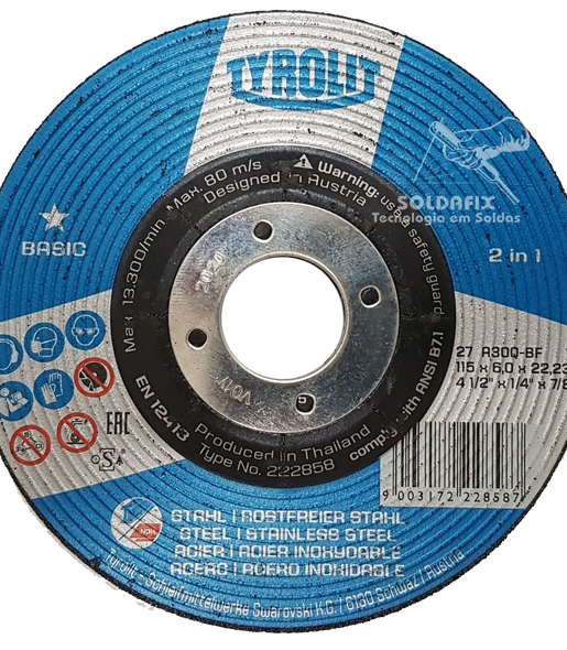 - DISCO PARA DESBASTE EM INOX/AÇO TYROLIT BASIC* 4 1/2 X 6,0 MM