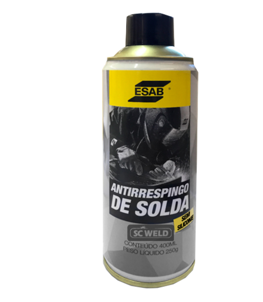 Anti-respingo ESAB é um aerossol formulado para facilitar o trabalho dos soldadores, reduzindo consideravelmente o tempo gasto no acabamento. Quando aplicado sobre chapas metálicas, recobre a superfície tratada com uma fina camada de óleo que impede a aderência dos respingos e resíduos da solda, além de dar proteção temporária contra a corrosão. Não afeta a qualidade e resistência das soldas, pois o produto é destruído pela alta temperatura. Pode ser usado em todo tipo de solda, e no caso do antirrespingo sem silicone, é ideal para superfícies onde haverá pintura posterior. É seguro para os soldadores, pois utiliza gás propelente não inflamável.