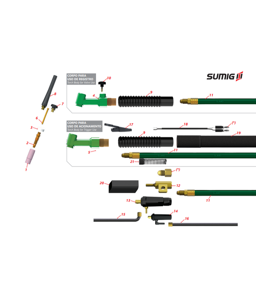 - Conector convencional TIG com entrada do gás