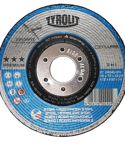 - DISCO PARA DESBASTE EM INOX/AÇO TYROLIT PREMIUM (CERABOND)*** 4 1/2 X 7,0 MM