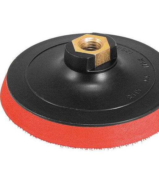 Descrição: Suporte para disco de lixa com pluma (sistema fixa fácil). Indicado para máquinas angulares rotativas de acionamento elétrico ou pneumático. Rotação máxima: 8.500 rpm. Pode ser utilizado como peça de reposição no jogo de discos para lixamento, código 12.40.700.000. Rosca M14.