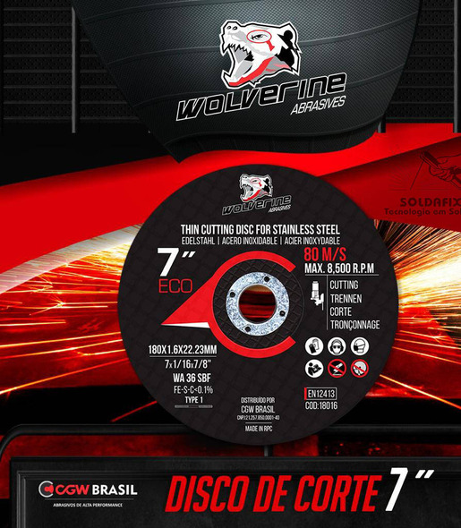 DISCO DE CORTE 7" X 1,60MM X 7/8" WOLVERINE CGW